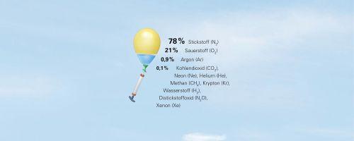 Was wir ganz allgemein als Luft bezeichnen, ist ein Gemisch aus verschiedenen Gasen, das die Atmosphäre unseres Planeten bildet. Luft besteht zu grössten Teilen aus Stickstoff und Sauerstoff, aus einem kleinen Anteil Argon und weiteren Gasen in kleinsten Mengen.