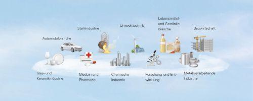 Typische Anwender-Branchen sind z.B. Metallverarbeitende Industrie, Umwelttechnik, Lebensmittel und Getränke, Medizin und Pharmazie, Bau, Metallurgie, Glas und Keramik, Chemische Industrie sowie Forschung und Entwicklung.
