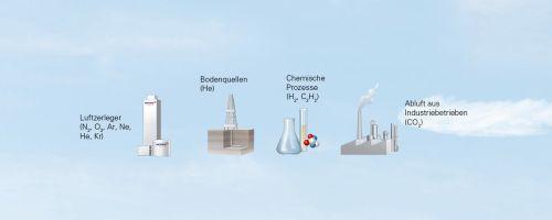 Sauerstoff, Stickstoff, Argon, Xenon, Neon und Krypton werden aus der Luft hergestellt.