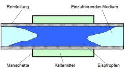 Durch gezieltes, temporäres Einfrieren des Rohrinhaltes können die notwendigen Arbeiten schnell, effiezient und kostengünstig durchgeführt werden.