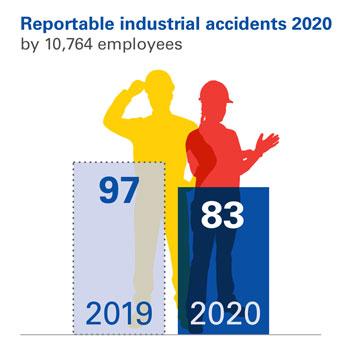 At Messer, the number of preventable accidents worldwide during the transport of our cylinder gases in 2020 was 64 – that means 3.05 accidents per million kilometers driven (4.91 accidents/million miles driven). The number of preventable accidents during the transport of liquefied gases was 194; accordingly, the frequency rate per million kilometers driven during the same period was 0.89 (1.43 accidents/million miles driven).