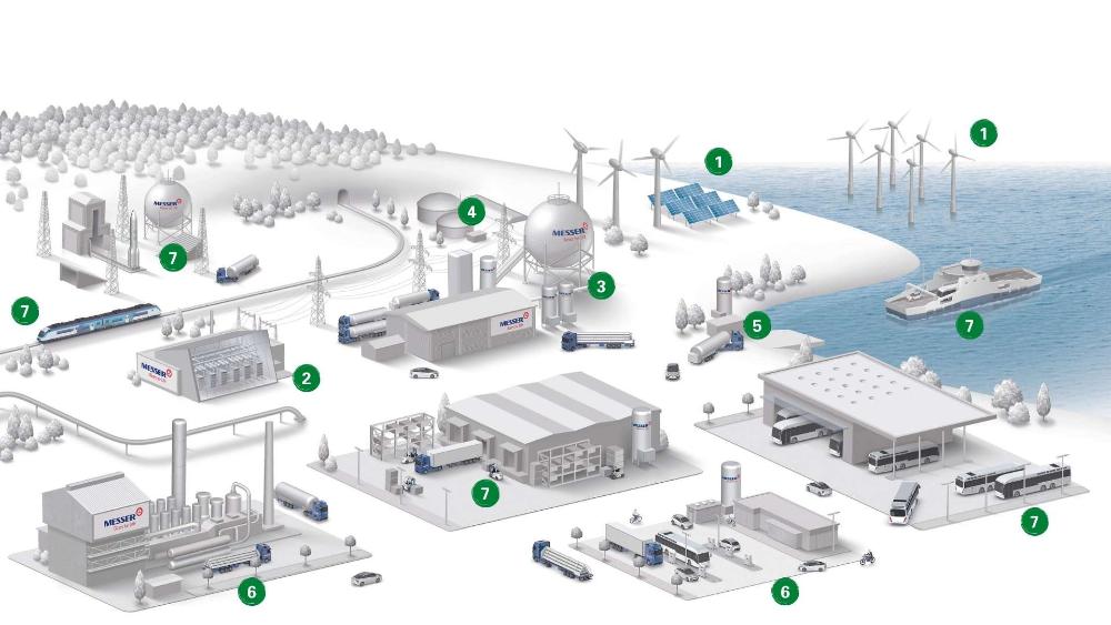 Messer ofrece junto a su socio tecnológico Siemens Energy las más avanzadas soluciones de electrólisis PEM de alta eficiencia y máxima fiabilidad para producir hidrógeno verde. Messer es especialista en sistemas de distribución y almacenamiento de gases industriales como el hidrógeno y oxígeno.