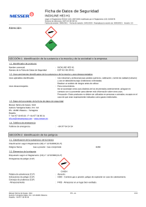 Fichas de seguridad de los gases - Messer Iberica de Gases S.A