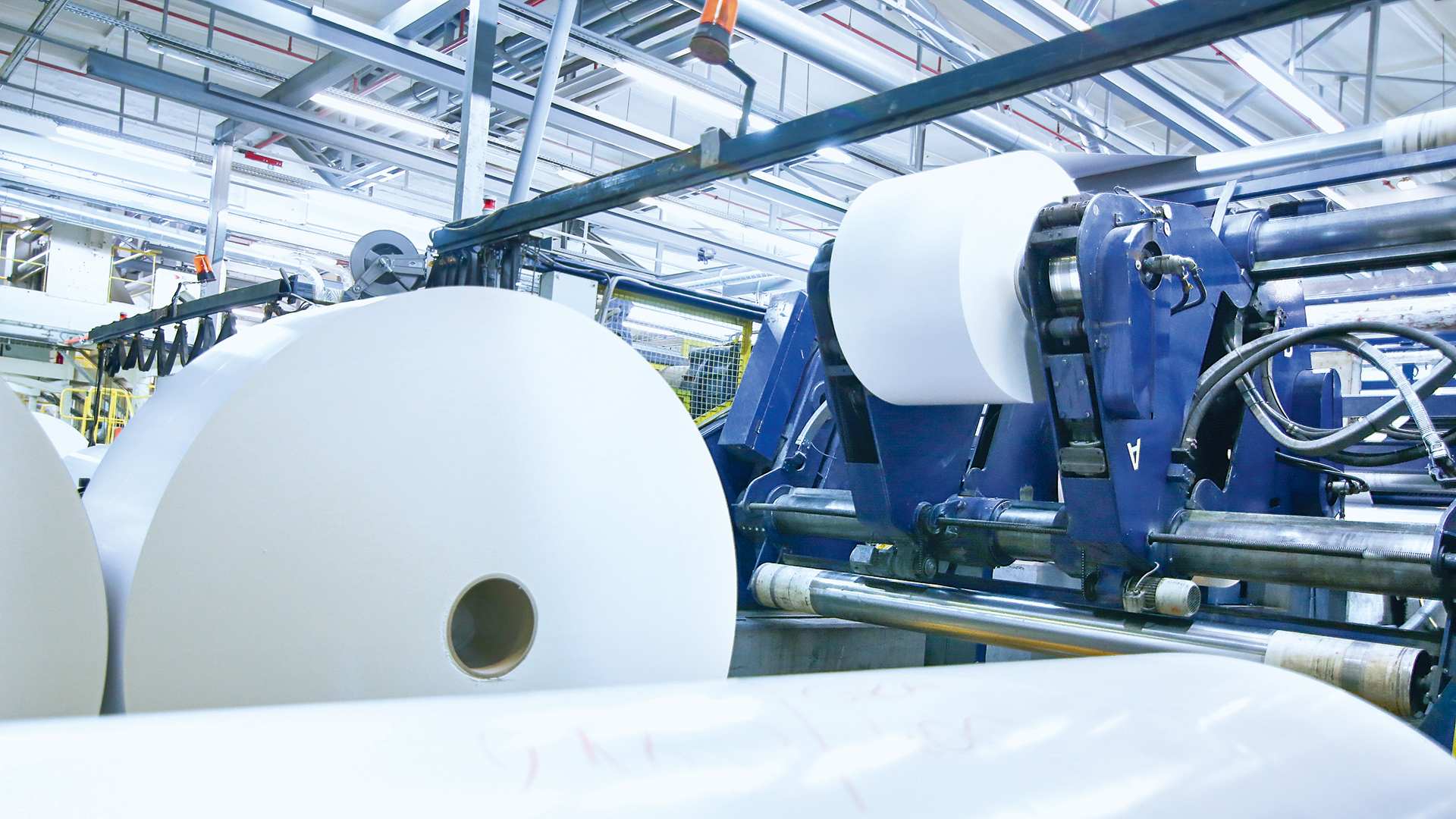 En la máquina de papel, el papel se produce a partir de fibras vegetales procesadas (mecánicas, pulpa química, fibras recicladas). En primer lugar, las fibras se distribuyen en agua, se pretratan, se mezclan con otras materias primas y, tras una dilución adicional y para que la mezcla de agua y fibras sea lo más uniforme posible, se introducen en la caja de entrada. Desde allí, esta suspensión se lleva a la tela, donde se forma la hoja y se lleva a cabo el primer paso del deshidratado. Los siguientes pasos de deshidratación se llevan a cabo en la sección de prensado y en la sección de secado. En el circuito de agua de la máquina de papel se recupera la mayor parte del agua utilizada para la fabricación del papel.