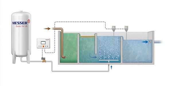 Überall dort, wo herkömmliche Belüftungsanlagen, die mit Druckluft arbeiten, überlastet sind, kann die Zugabe von reinem Sauerstoff helfen. Denn im Vergleich zu Luft, die nur zu ca. 20 % aus Sauerstoff besteht, erhält man mit reinem O₂ die 5-fache Reinigungsleistung in Belebungsbecken, biologischen Filtern, Festbettanlagen und Membranbioreaktoren.