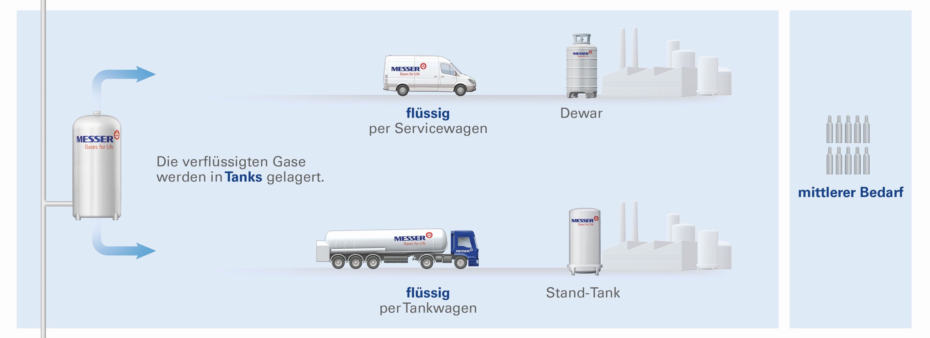 Die für Ihren Bedarf geeigneten Behälter erhalten sie bei Messer. Wir beraten Sie gerne.